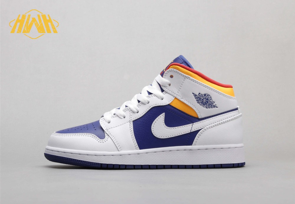 Air Jordan 1 Mid White Laser Orange Deep Royal Blue 36-40